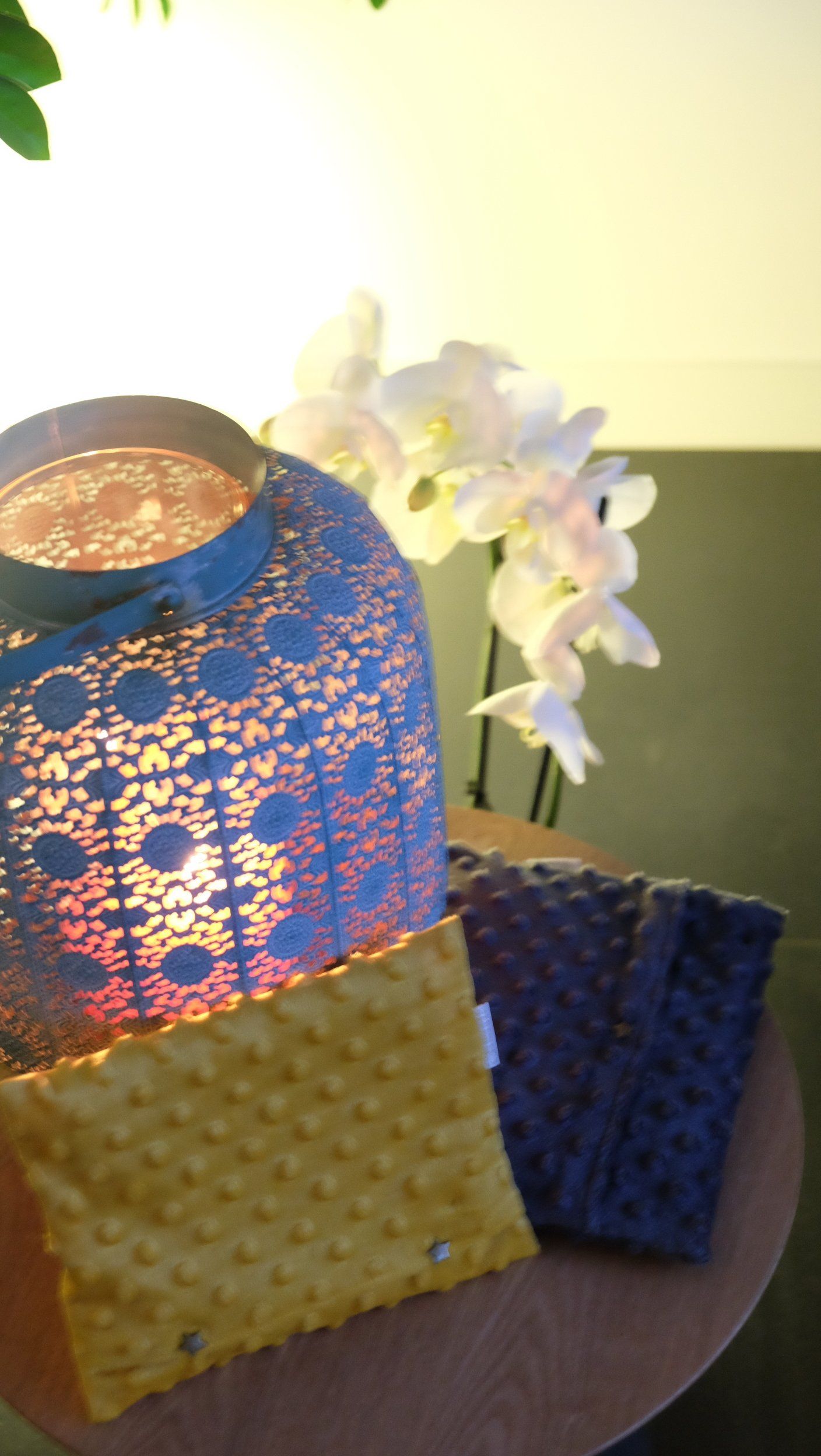 apaise, soulage, décontracte et réchauffe. Elle vous enveloppe d’une douce chaleur et apporte un réconfort immédiat. Housse déhoussable Minky ultra doux poids gris, jaune, rose, bleu - Intérieur : graines de lin - 20x22 cm (avec mode d’emploi). 24€